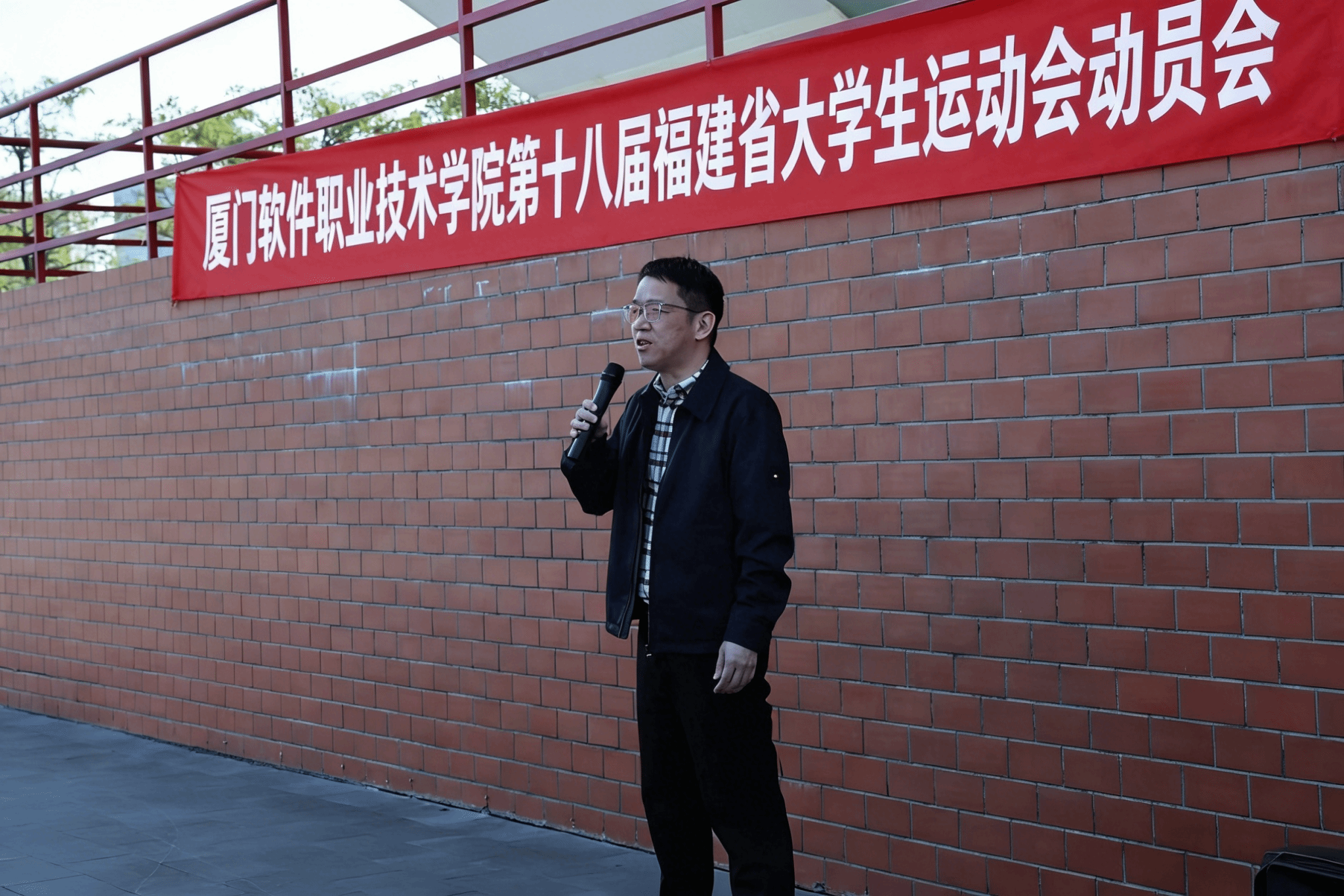 动员会上,校长助理吴辉煌发表动员讲话。他首先代表学校向刻苦训练、积极备战的全体运动员、教练员致以诚挚慰问,充分肯定了学院前期备战工作的扎实成效。他强调,日常训练保障与赛事服务工作,叮嘱全体运动员严守训练纪律、做好赛前防护,科学调整竞技状态。福建省大学生运动会是展现高校体育风采、锤炼学子意志品质的重要平台,随后,王文清主任上台发言,希望全体参赛队员牢记使命、不负韶华,在训练中精益求精、突破自我,在赛场上团结协作、顽强拼搏,既要赛出竞技水平,更要赛出道德风尚,充分展现厦门软件职业技术学院的良好形象。
