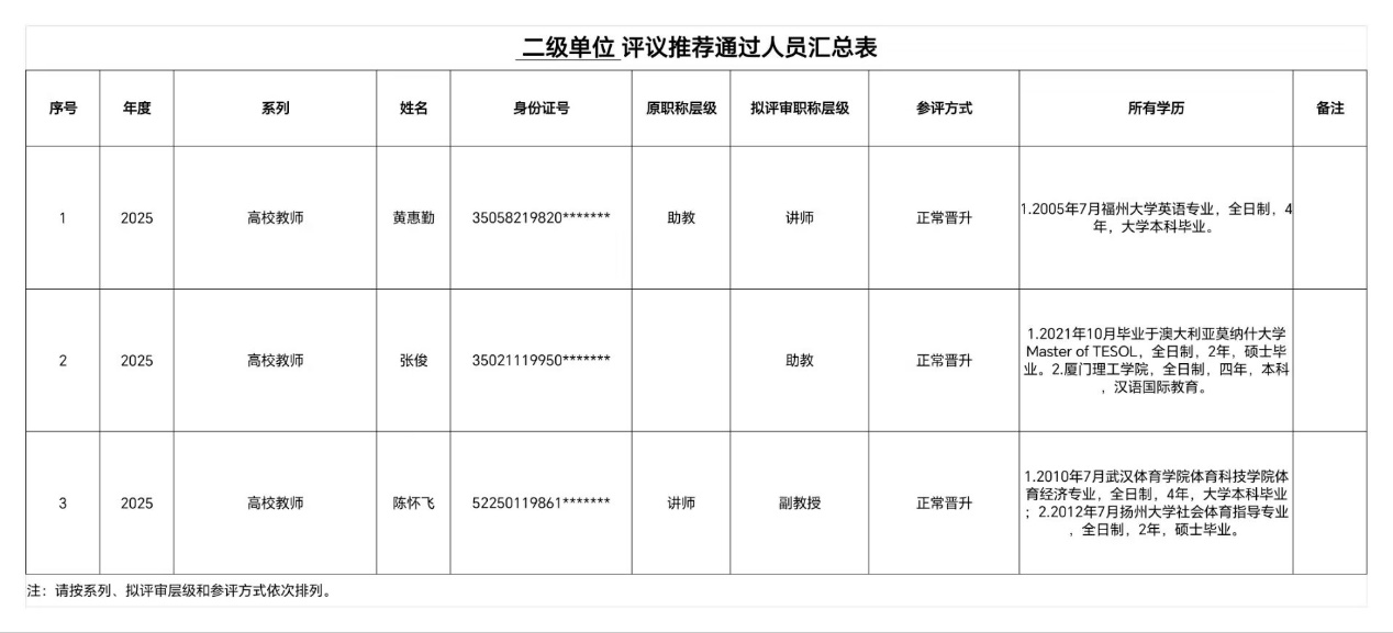 根据《厦门软件职业技术学院专业技术职务评聘实施办法》(厦软人〔2025〕3号),公共教育学院教师经个人申报、学院(部门)评议推荐组审核,现将资格审查通过人员名单公示如下: