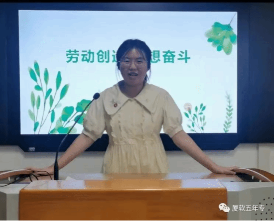 林怡锦同学作为我校唯一的参赛选手,在林华红老师的指导下,自信流畅、面带笑容地展开了《劳动创造 理想奋斗》的主题演讲,声情并茂地诠释了历代人们的故事与成就,呼吁新时代青年应当努力学习,为建设更美好的家园做贡献。