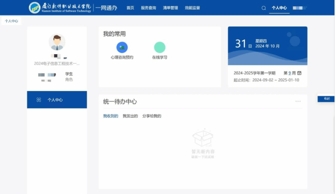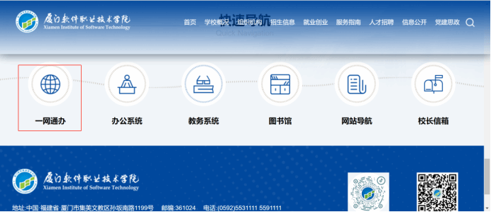 1.点击学校官网(https://www.xmist.edu.cn)底部“一网通办”链接。