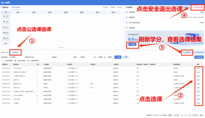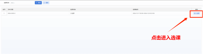 2.在规定的选课时间范围内,点击【进入选课】,进入选课课程页面,如下图所示。