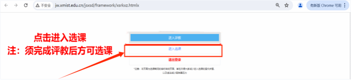 评教选课期间为减少系统卡顿,仅开放评教选课功能,登录后系统界面如下图所示。