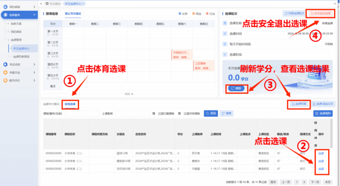 特别提示:学生最终选课结果以个人上课课表为准,选项时间截止后,请及时查看课表。